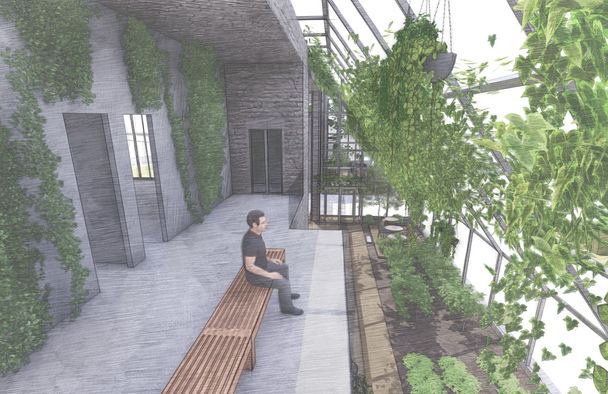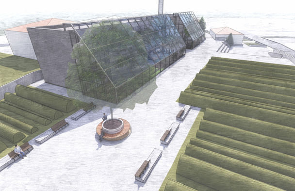 ‘’Dönüşüm’’, ‘’Sosyalleşme’’ ve ‘’Organik’’ kelimeleri benim tasarıma yön veren kelimelerdir. Tasarımımı yaparken öncelikle gerekli mekanları belirledim. Bu mekanlar, tarım uygulamalarının yapılacağı bir sera; araştırmaların ve uygulamalı eğitimlerin yapılacağı laboratuvarlar, teorik dersler için sınıflar, kafe, satış alanı ve çok amaçlı salondu. Susuz tarım için kullandığım sera tüm mekanlara dönüşsün istedim ve diğer mekanlar ile serayı birleştirdim. Böylece sera laboratuvarlara, sınıfa, kafeye ve çok amaçlı salona dönüştü. Sonrasında tasarımımın köy ile bağlantısını kurmak adına köy meydanına, camiye ve yemek evine ulaşımını sağlayacak aksları belirledim ve tasarımımı bu doğrultularda geliştirdim.